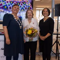 It is a great honor for us at Ilisimatusarfik that you are now appointed honorary doctorate. The reason for the appointment is that for 50 years you have described and disseminated the living cultural production of the Inuit in Canada, here in Greenland and across the Arctic. Through your research and dissemination, you have created a nuanced picture of literature, both novels and poetry, film production, visual arts, and sculpture, which shows the strength of cultural production. You have always placed artistic expression in the larger context of social conditions, indigenous rights, colonial history, and the right to self-determination.