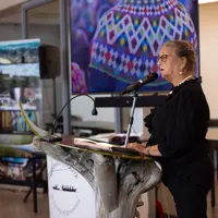 For decades, you have tirelessly communicated cultural life here in Greenland to Canada and the rest of the world. This has been done through films, books, exhibitions, articles, and media interviews. In addition, you are known by many here, probably by everyone, for your fine reports in the KNR news about the political and cultural situation for Inuit and other indigenous peoples in Canada. We all know you as Marianne Stenbæk, Montreal, Canada - a voice that always speaks for social justice, equality, self-determination, and rights. In your reports, you have always provided up-to-date insight into the current developments towards increased self-determination in Inuit lands and told the story in a decolonizing light, showing past - and sometimes present - abuses and crimes against indigenous peoples, women, and children, but always with an eye for the strengths of the Inuit culture and political struggle for self-determination and rights to their own land, culture, and language. You were the one who told us on the radio here about the revelation of the many hidden graves of indigenous children who had been forcibly removed from their homes and families and placed in boarding schools, killed by lack of family, illness, abuse, and murder. In this way, you have contributed to describing the historical and cultural development in diverse perspectives that illuminate and contribute to cultural sustainability in the Arctic, including in Inuit countries as well as in the relationship with former colonial powers and current majority societies. Art is seen as part of development to preserve cultural landscapes and to contribute to cultural and social sustainability that builds cultural identity and community.